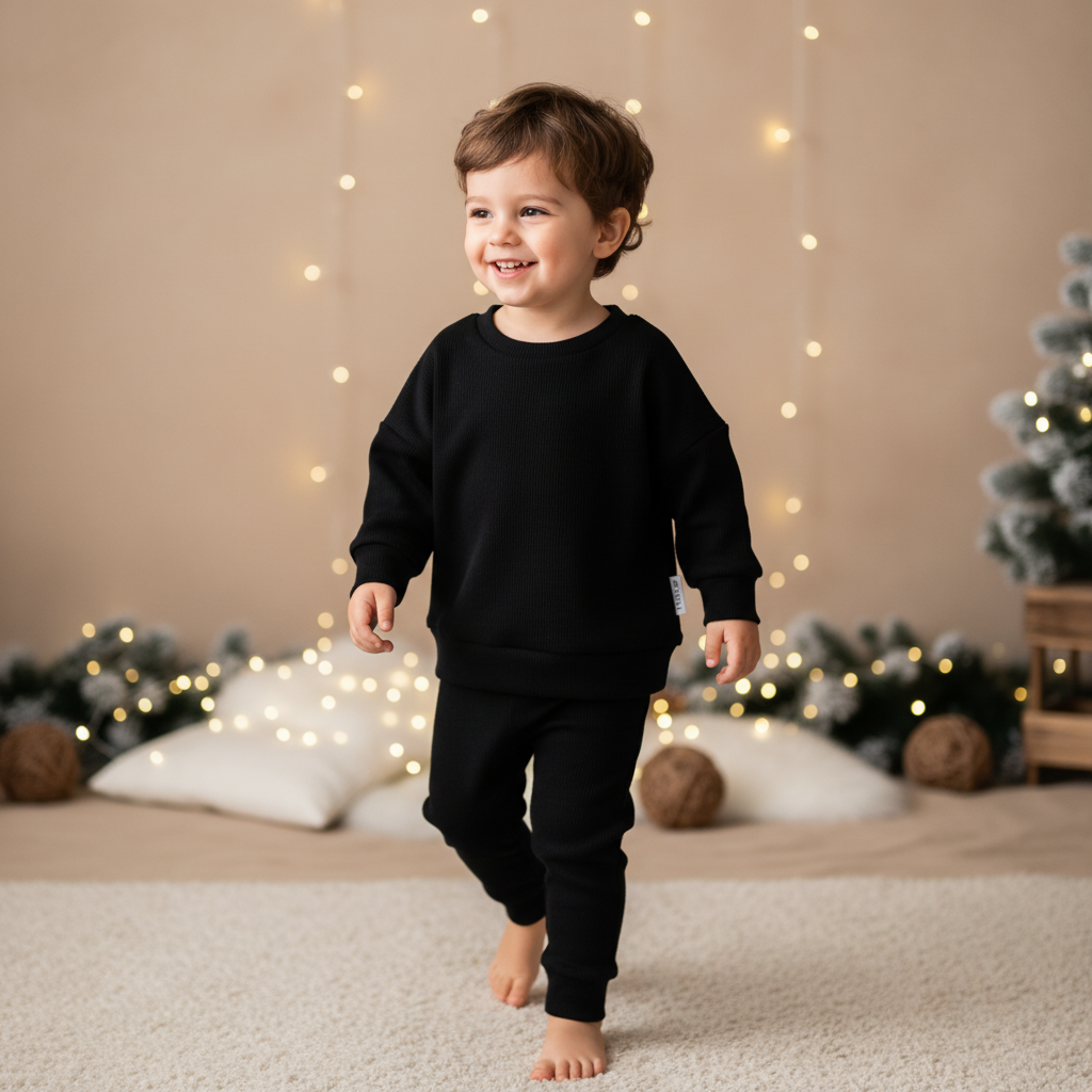 Mikina je v štýle oversize a je z rebrovaného úpletu. Ten je veľmi príjemný na nosenie a deti vecičky z neho vynosia dlho, pretože je poriadne pružný.