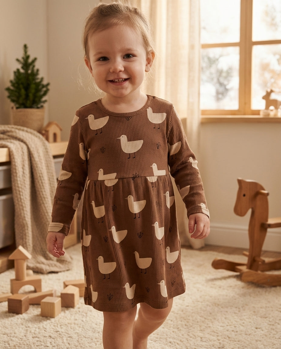 Tieto šaty s dlhým rukávom sú navrhnuté tak, aby priniesli do šatníka vašej malej princeznej nielen pohodlie, ale aj rozprávkovú eleganciu. Keď som prvýkrát držala v rukách rebrovaný úplet, vedela som, že chcem vytvoriť niečo, v čom sa každé dieťa bude cítiť pohodlne, aj keď sa bude hrať, behať, alebo sa točiť dokola s radosťou.