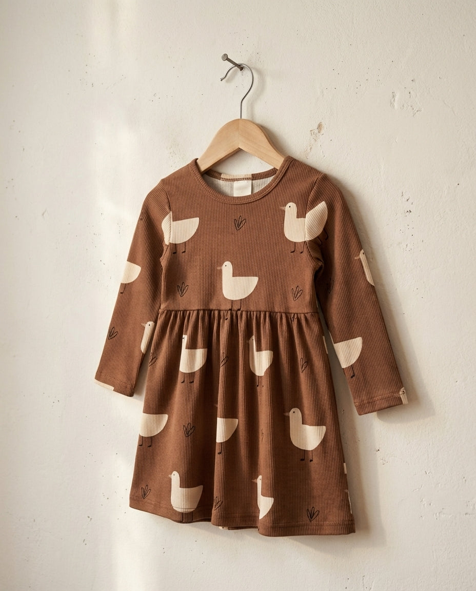 Šaty s dlhým rukávom hnedé kačičky