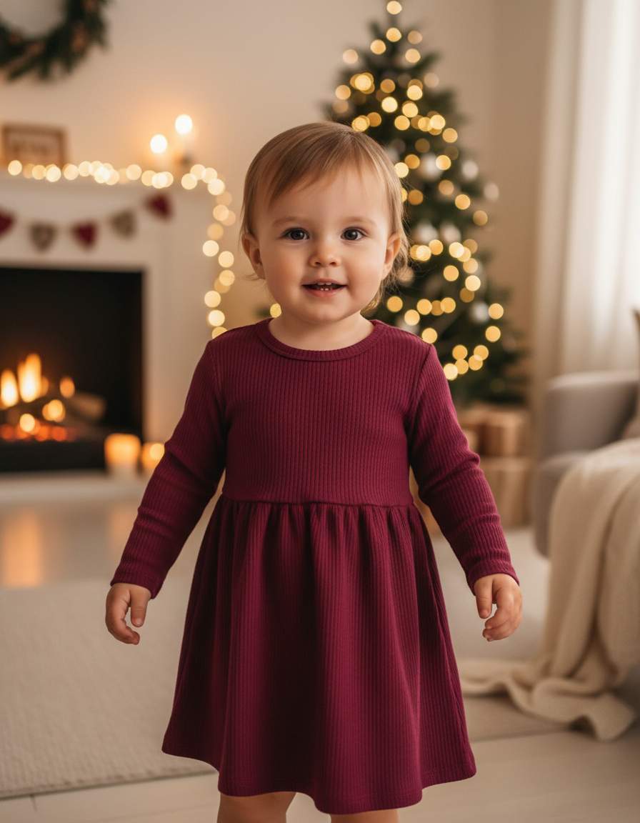 Tieto šaty s dlhým rukávom sú navrhnuté tak, aby priniesli do šatníka vašej malej princeznej nielen pohodlie, ale aj rozprávkovú eleganciu. Keď som prvýkrát držala v rukách rebrovaný úplet, vedela som, že chcem vytvoriť niečo, v čom sa každé dieťa bude cítiť pohodlne, aj keď sa bude hrať, behať, alebo sa točiť dokola s radosťou.